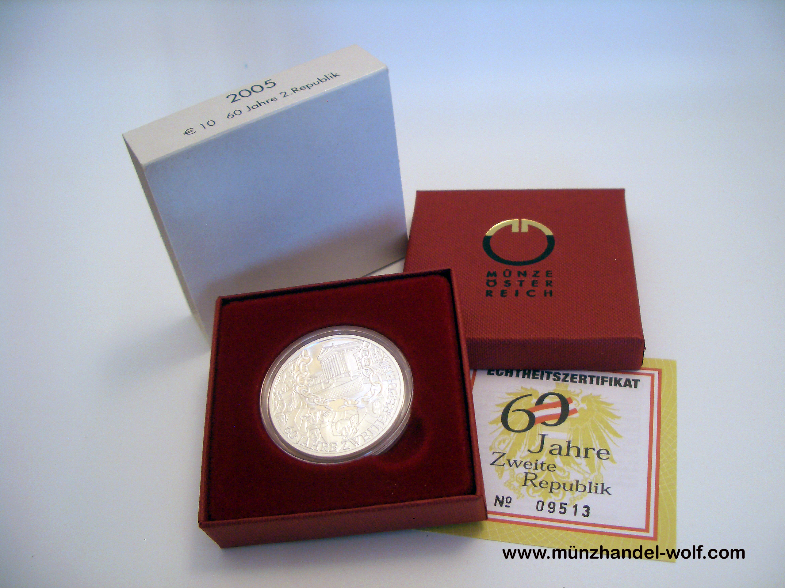 In der oberen Hälfte der zweiten Münzseite sieht man eine Seitenansicht des von Theophil Hansen entworfenen Parlaments. Das Gebäude ist links und rechts von einer gesprengten Kette umgeben. Diese erinnert, abgeleitet vom österreichischen Bundesadler, an die wiedererlangte Freiheit Österreichs nach dem zweiten Weltkrieg. Darunter ist in einem Bogen das jubelnde Volk dargestellt. Am unteren Münzrand liest man 60 JAHRE ZWEITE REPUBLIK.