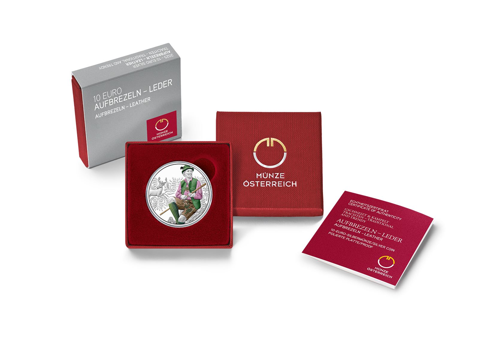Die zweite Ausgabe der Serie „gschneizt & kampelt“ widmet sich dem traditionsreichen Ledergewand – einem Symbol österreichischer Trachtenkultur. Die 10-Euro-Silbermünze in der Prägequalität Platte Poliert überzeugt durch feine Details und hochwertige Verarbeitung. Ein Muss für Sammler und Liebhaber österreichischer Volkskultur.
