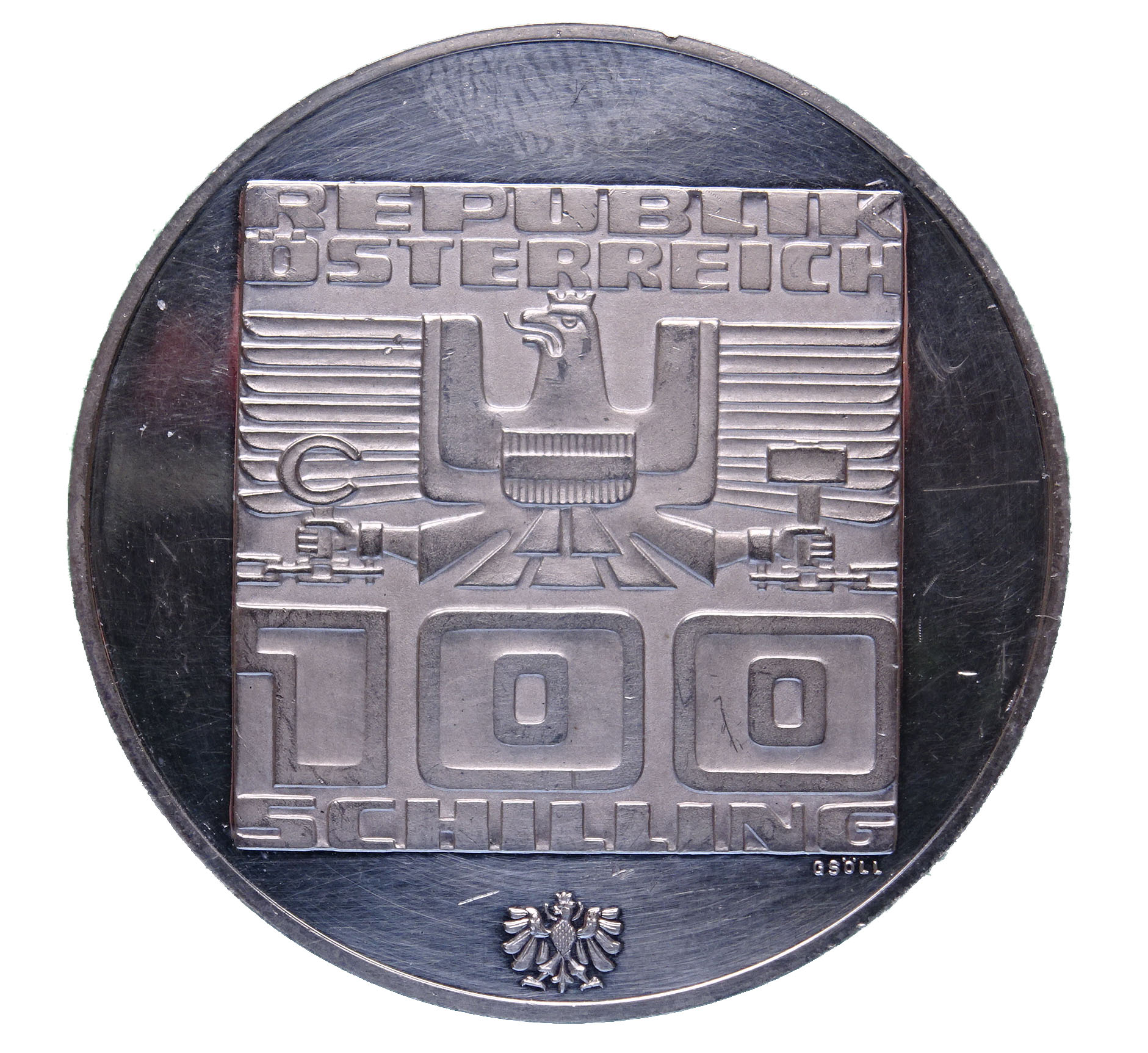 Die 100 Schilling Silbermünze von 1976 ist die 4. Ausgabe der Olympia-Serie zur XII. Olympiade der Winterspiele in Innsbruck. Geprägt in , zeigt sie ein stilisiertes Wintersportmotiv und symbolisiert Österreichs Rolle als Gastgeberland.