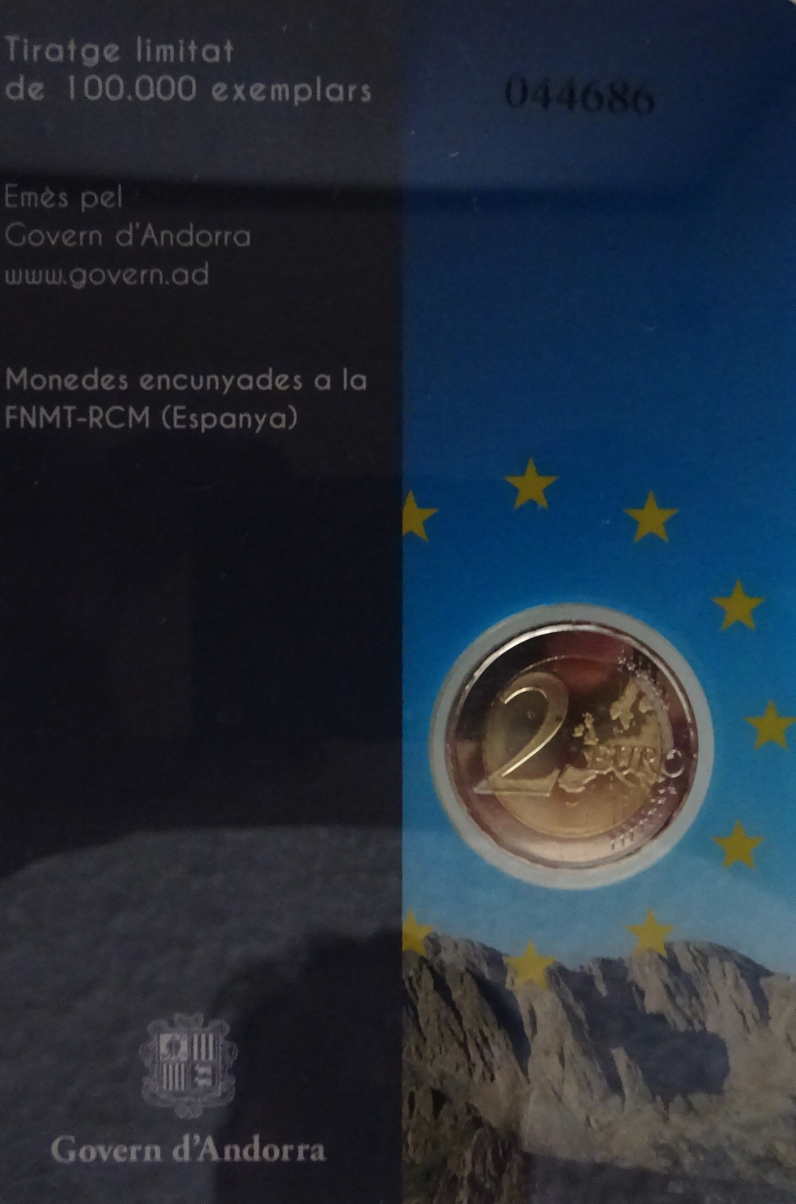 Die 2-Euro-Gedenkmünze Andorra 2014 „Beitritt zum Europarat“ wurde zum 20. Jahrestag des Beitritts Andorras zum Europarat im Jahr 1994 ausgegeben. Als erste Euro-Gedenkmünze des Fürstentums markiert sie einen historischen Meilenstein. Das Motiv zeigt links das Wappen Andorras und rechts eine stilisierte „20“, deren Null mit den Sternen der EU-Flagge gefüllt ist – ein Symbol für europäische Integration und Zusammenarbeit.