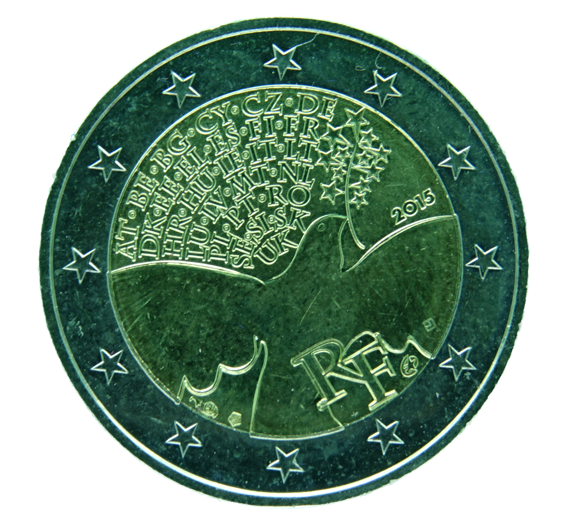 Frankreich ehrt das Ende des Zweiten Weltkriegs vor 70 Jahren mit einer 2-Euro-Gedenkmünze. Um eine Friedenstaube herum sind die Länderkürzel der europäischen Nationen angeordnet, die dank des Sieges der Alliierten über den Nationalsozialismus nun seit sieben Jahrzehnten in Frieden leben. Der 8. Mai 1945, der Tag, an dem die Kapitulation der deutschen Wehrmacht wirksam wurde, wird seither als Tag der Befreiung begangen.
