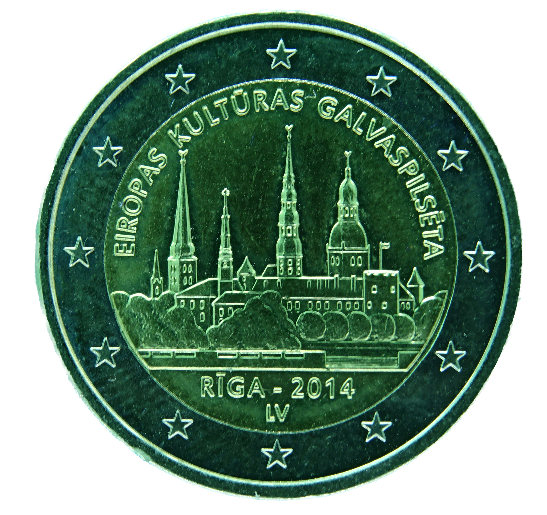 Seit 1997 zählt die Innenstadt von Riga zum UNESCO-Weltkulturerbe. Im Jahr 2014 wurde die Hafenstadt am Baltischen Meer zur Kulturhauptstadt Europas ernannt. Besonders bemerkenswert sind die Jugendstilarchitektur und der historische Stadtkern der lettischen Hauptstadt, die weltweit als einzigartig gelten. Die Skyline von Riga wird durch zahlreiche spitze Kirchtürme geprägt. Eine 2-Euro-Gedenkmünze, die anlässlich der Europäischen Kulturhauptstadt 2014 geprägt wurde, bietet einen prächtigen Ausblick über den Fluss Daugava hinweg auf die Petrikirche, den Dom und die Jakobuskirche.