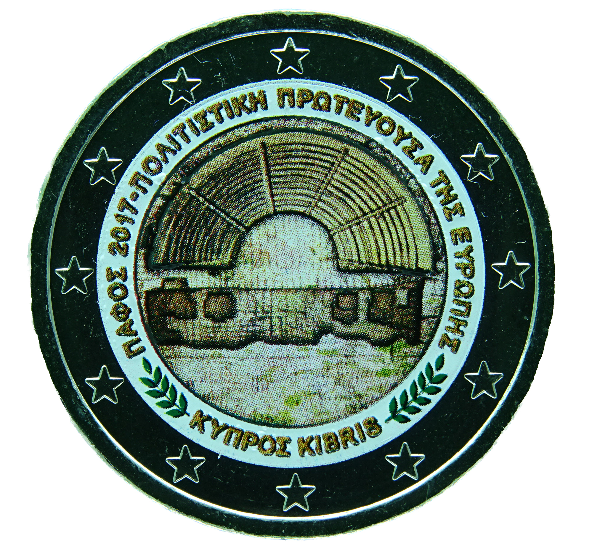 2 Euro Zypern 2017 Kulturhauptstadt Paphos mit Farbapplikation