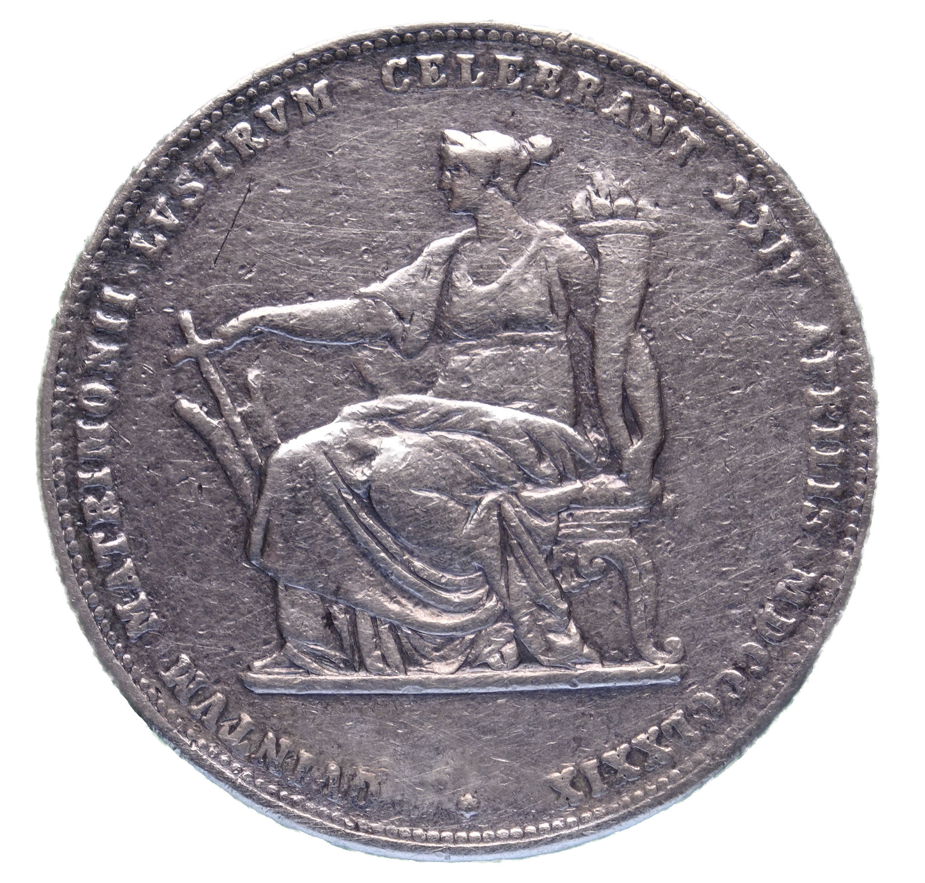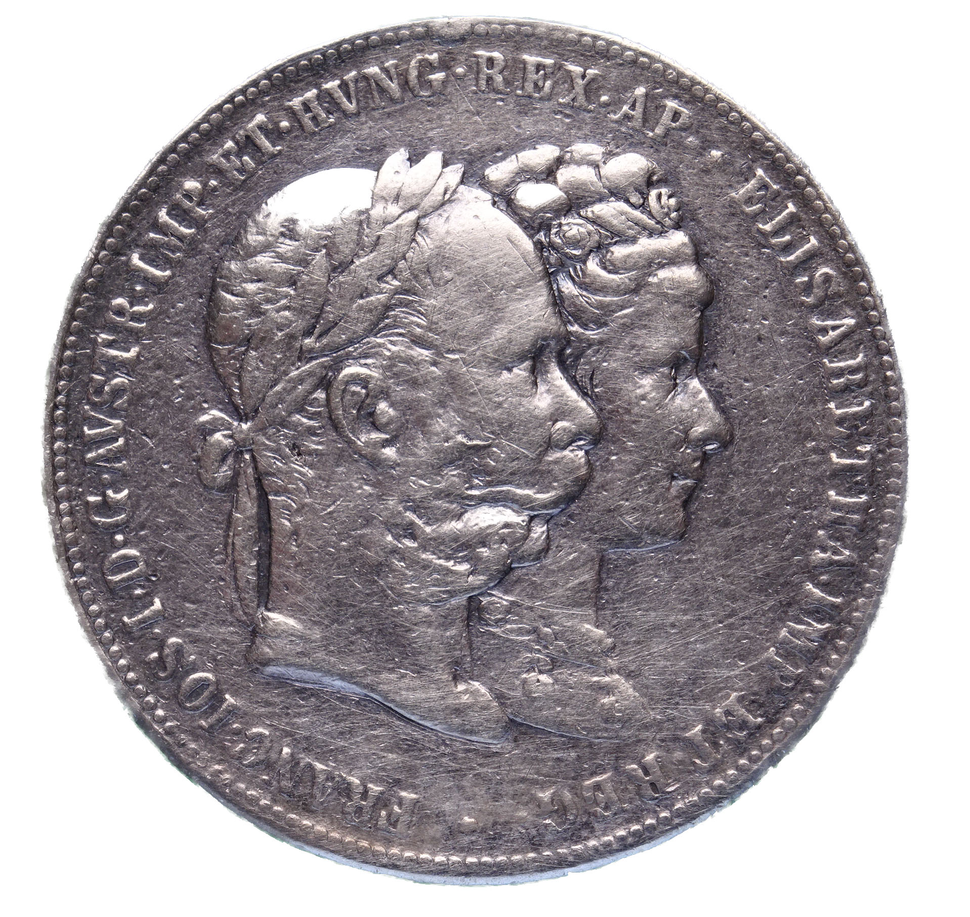 Historische Silbermünze zur Silberhochzeit von Kaiser Franz Joseph I. und Kaiserin Elisabeth
