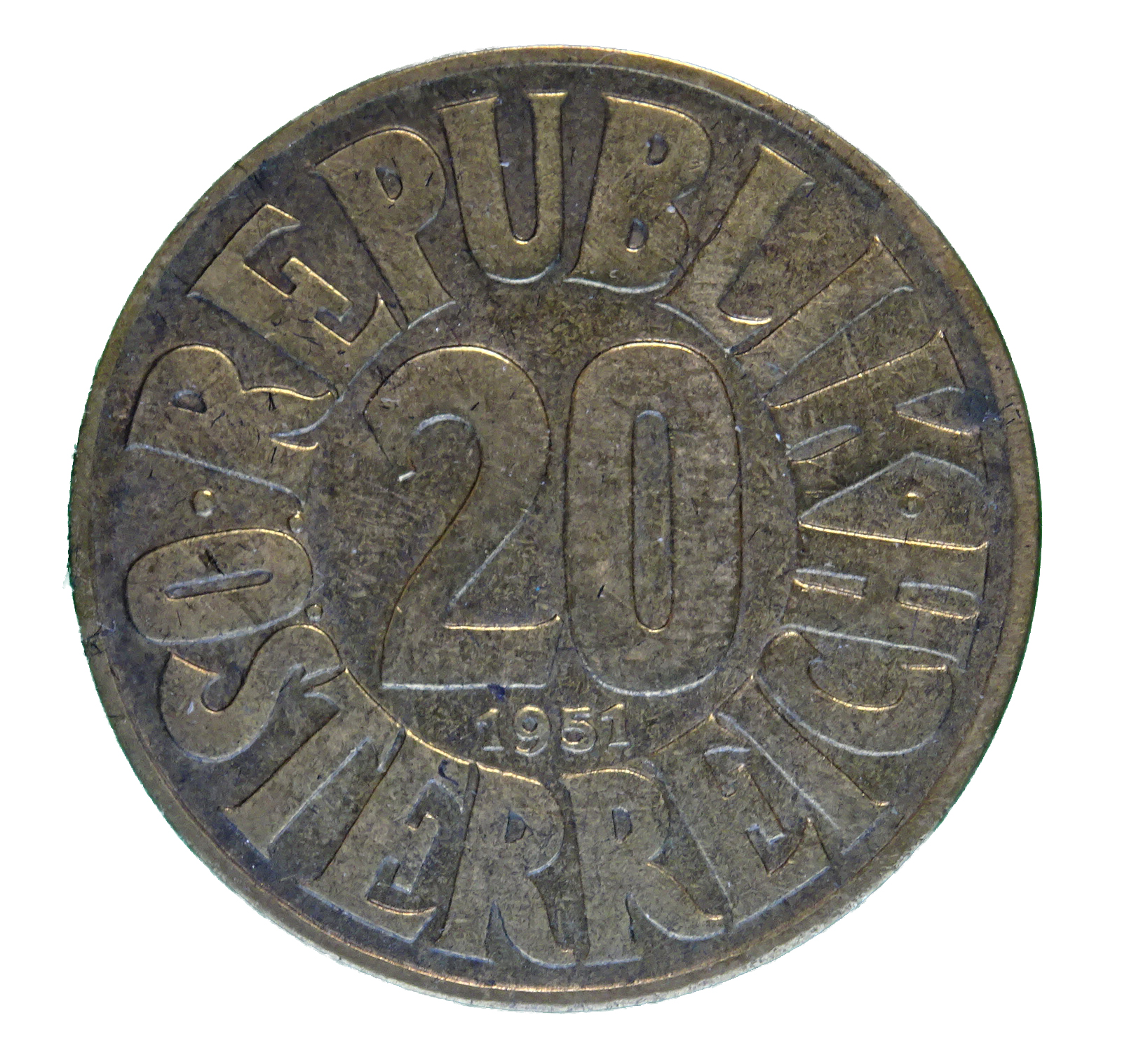Die 20‑Groschen‑Münze 1951 besteht aus einer Kupfer‑Aluminium‑Legierung (Cu‑Al) und gehört zu den frühen Umlaufmünzen der Zweiten Republik Österreich. Sie steht für den wirtschaftlichen Wiederaufbau der Nachkriegszeit und zählt heute zu den typischen, gern gesammelten Kleinmünzen dieser Epoche.