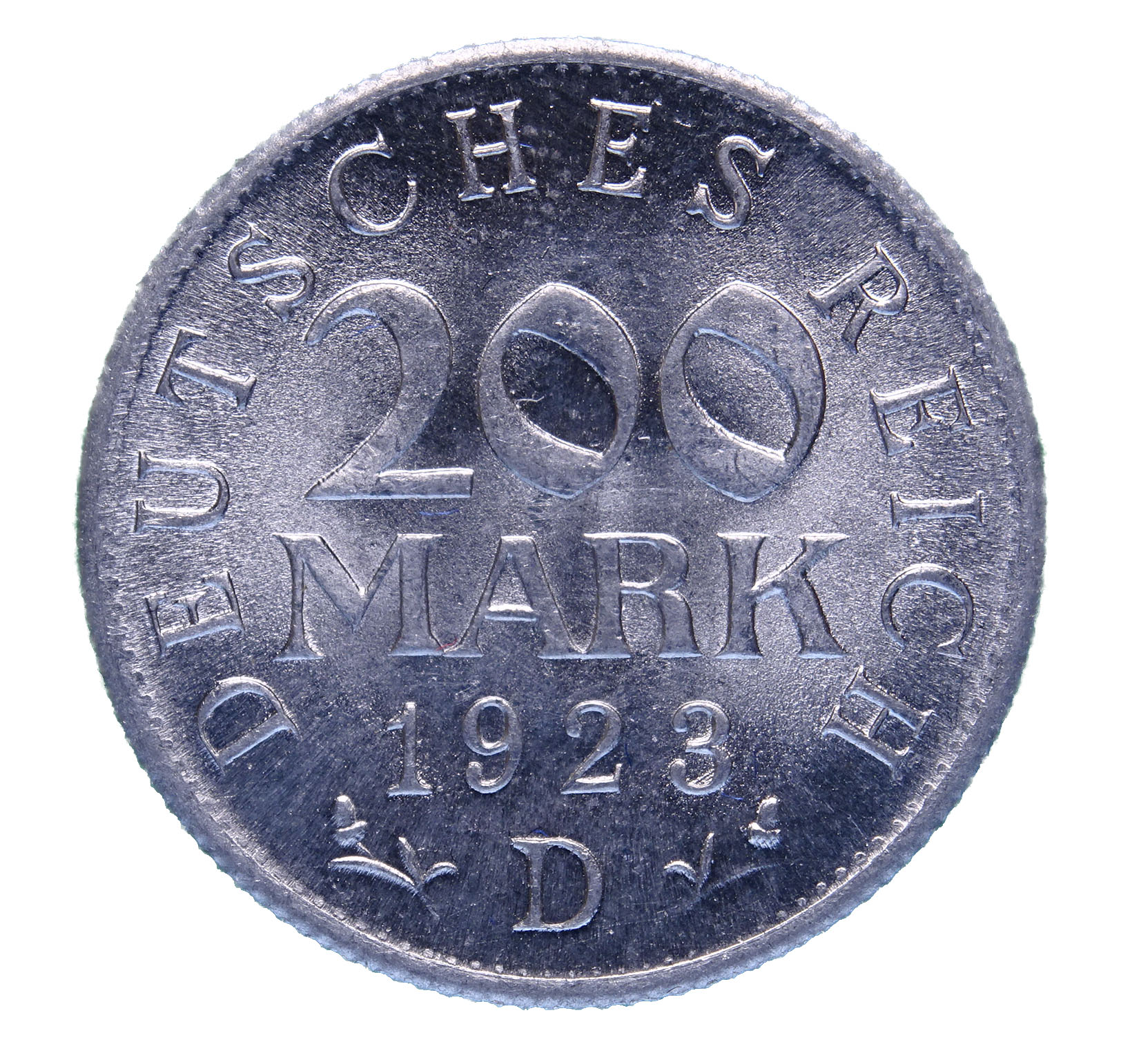 Die 200-Mark-Münze von 1923 ist ein eindrucksvolles Relikt aus einer der turbulentesten Phasen der deutschen Geldgeschichte. Geprägt in München (Prägezeichen D), steht sie für die dramatische Hyperinflation der Weimarer Republik, als Millionenwerte binnen Tagen ihren Wert verloren.