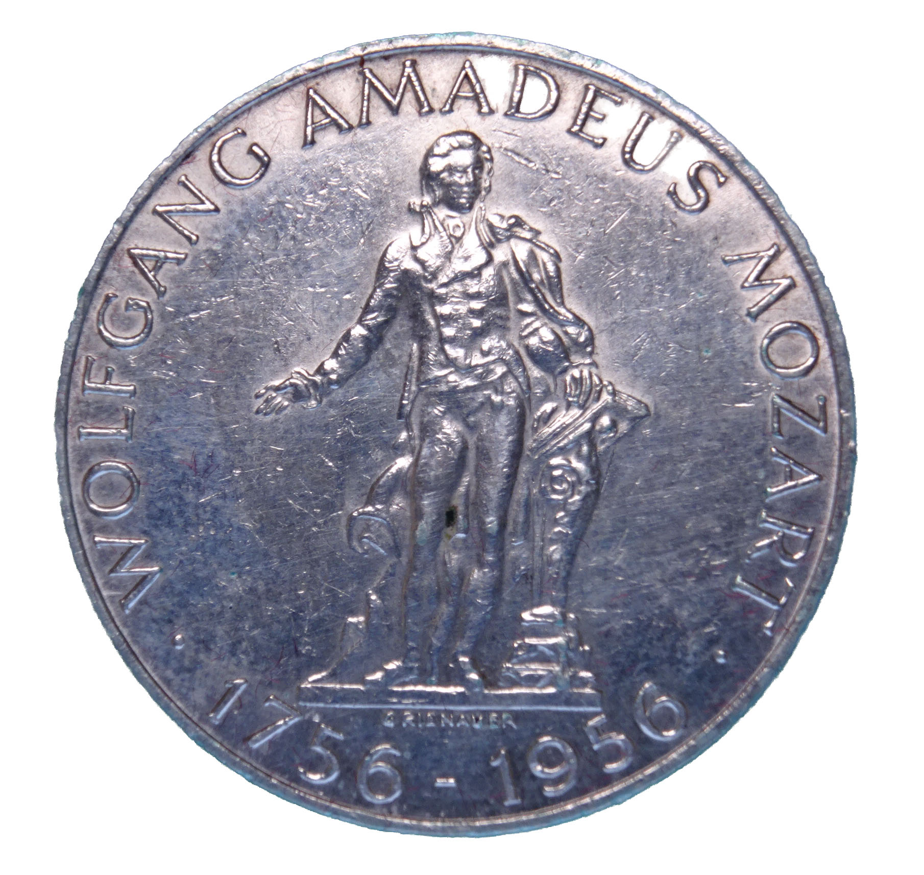 25 Schilling Silber 1956 – eine eindrucksvolle österreichische Gedenkmünze zu Ehren von Wolfgang Amadeus Mozart. Diese Silbermünze der 2. Republik würdigt das musikalische Genie und ist ein begehrtes Sammlerstück.