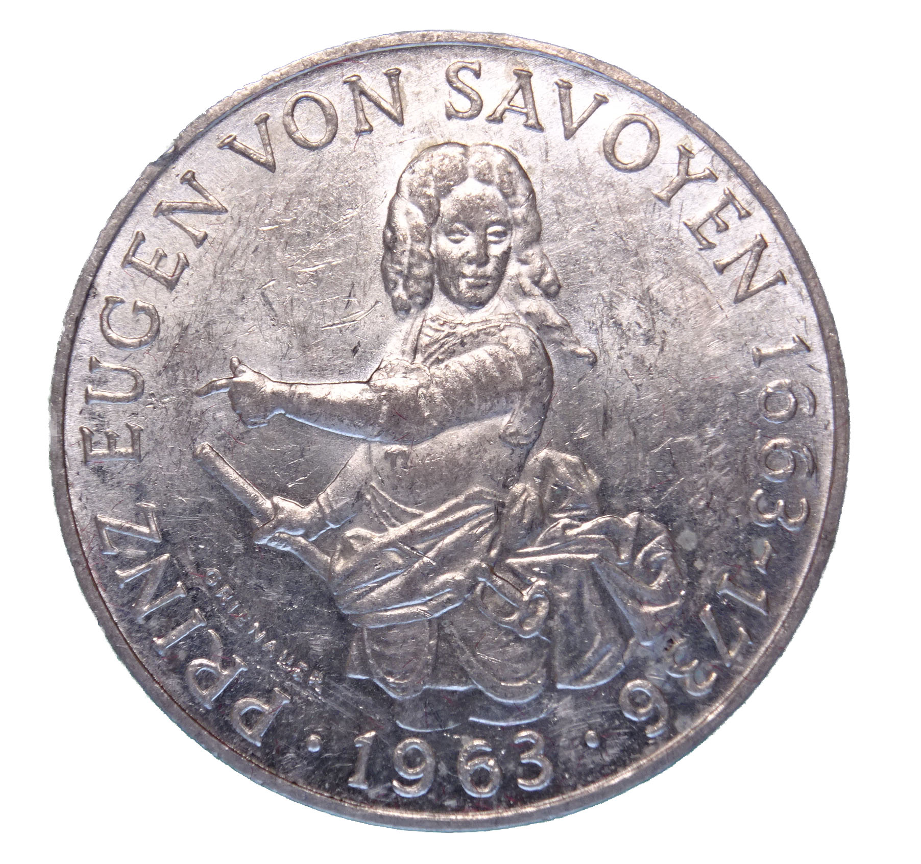Diese historische Gedenkmünze würdigt Prinz Eugen von Savoyen, einen der bedeutendsten Feldherren der österreichischen Geschichte.