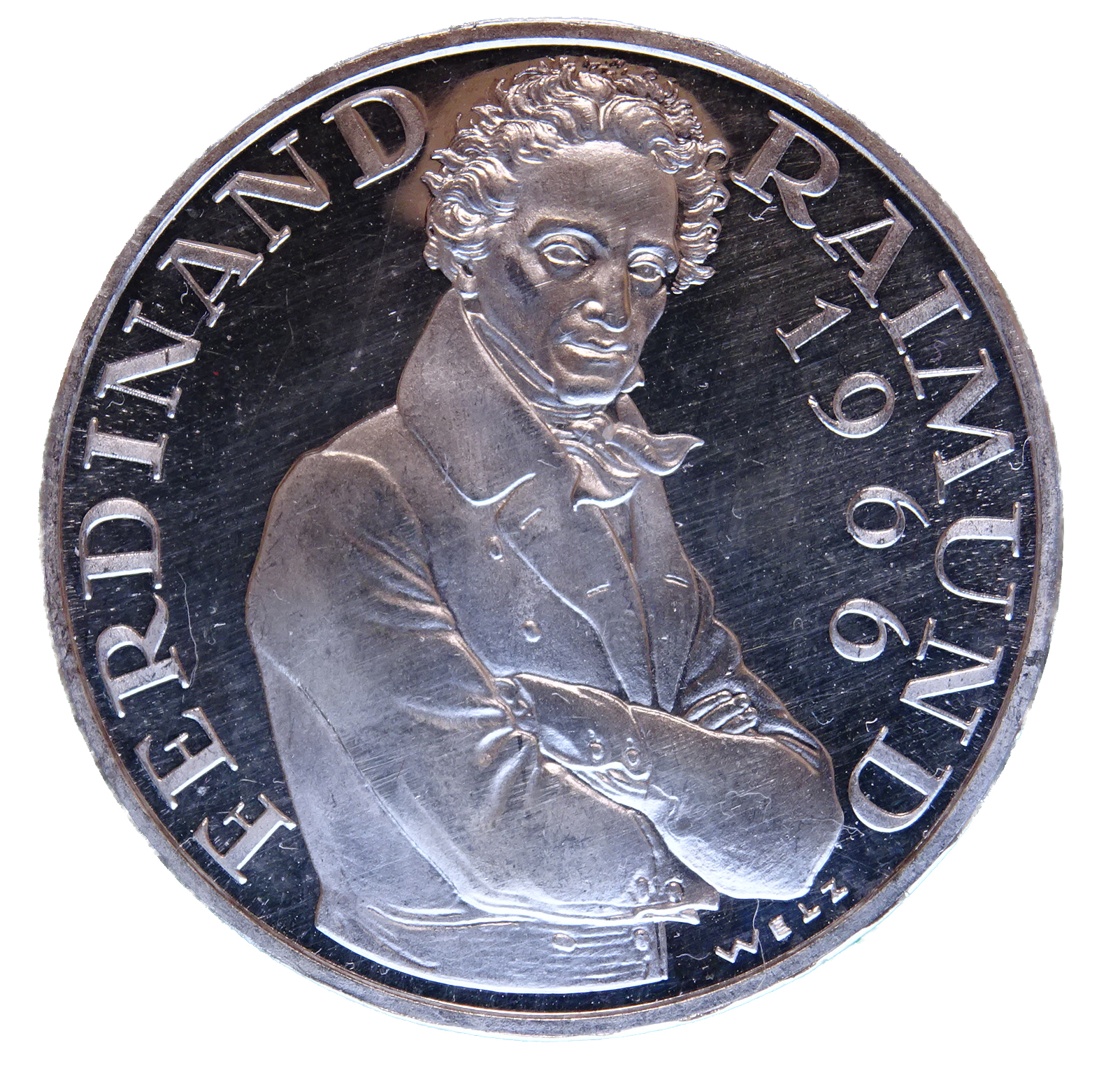 Die 25‑Schilling‑Silbermünze von 1966 ehrt den österreichischen Dramatiker Ferdinand Raimund und zählt zu den beliebtesten Ausgaben der 2. Republik. Die Münze erscheint in Polierter Platte (PP) – der höchsten Prägequalität – mit spiegelndem Feld und mattierten Reliefs. Ein klassisches Sammlerstück, das historische Bedeutung und numismatische Eleganz verbindet.