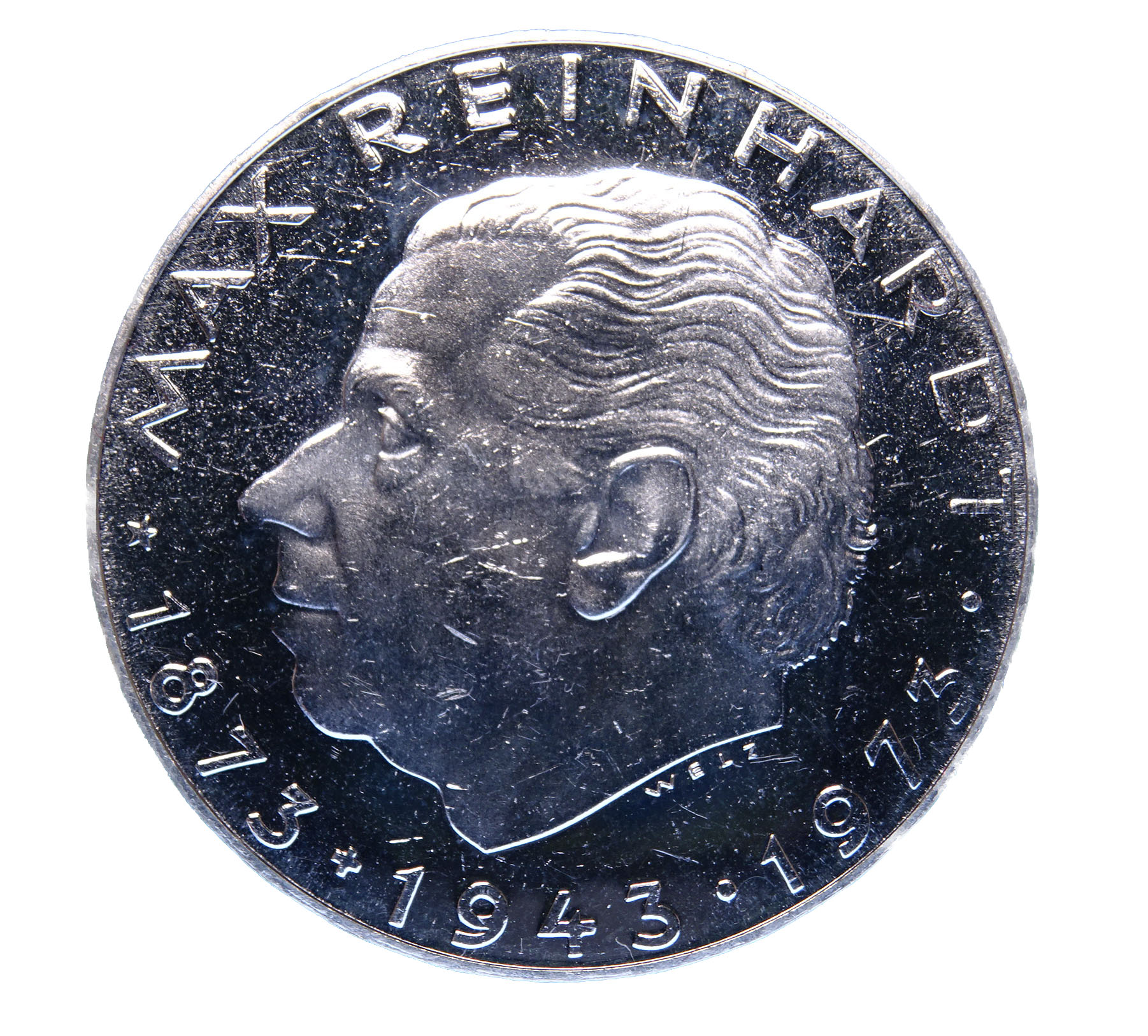 Diese hochwertige Gedenkmünze wurde 1973 zum 100. Geburtstag von Max Reinhardt ausgegeben – dem visionären Theaterregisseur und Gründer der Salzburger Festspiele.