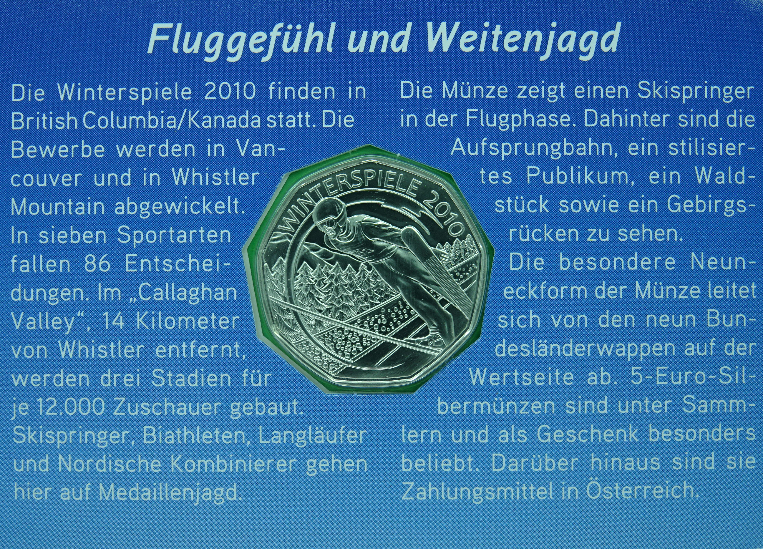 Das typische Merkmal dieser Münze ist die markante Form des Neunecks, die sich von der Zahl der österreichischen Bundesländer ableitet. Im Zentrum der Wertseite findet sich der Nennwert "5", um den die Wappen der neun Bundesländer angeordnet sind. Zwischen den Wappen und dem Münzrand befindet sich in großen Lettern die Rundschrift "Republik Österreich" sowie "Euro".