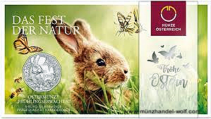 Die 5 Euro Silbermünze 2019 „Frühlingserwachen“ ist eine offizielle Gedenkausgabe der Münze Österreich und würdigt den Zauber des Frühlings mit einem kunstvollen Motiv. In der hochwertigen Handgehobenen Prägung (Hgh) gefertigt, zeigt die Münze einen Feldhasen, der zwischen Blumen, Bienen und einem Schmetterling die Rückkehr des Lebens in der Natur symbolisiert.