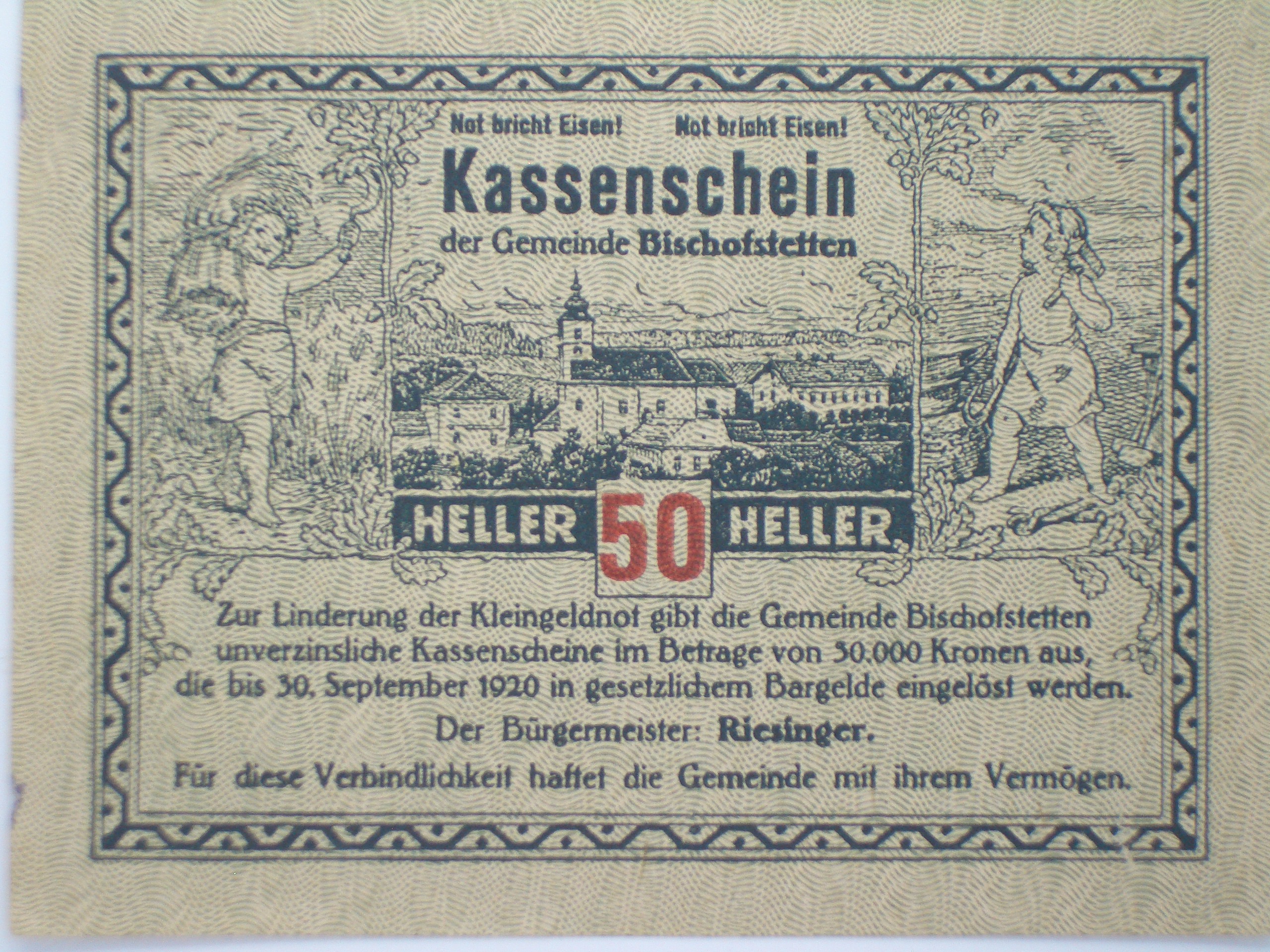 50 Heller Kassenschein Gemeinde Bischofstetten