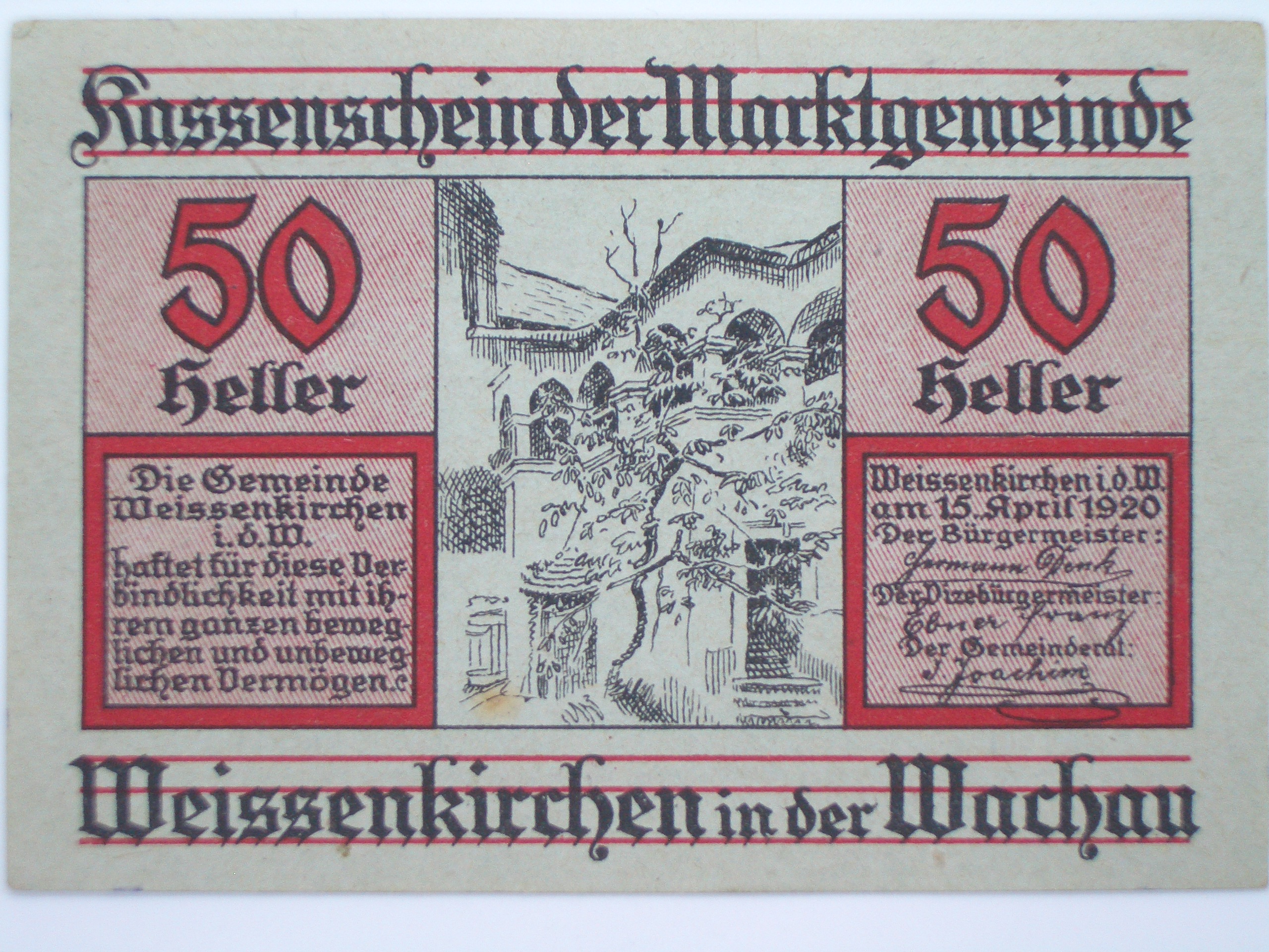 5 Stück 50 Heller Kassenschein Marktgemeinde Weisskirchen in der Wachau