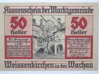 Preview: 5 Stück 50 Heller Kassenschein Marktgemeinde Weisskirchen in der Wachau