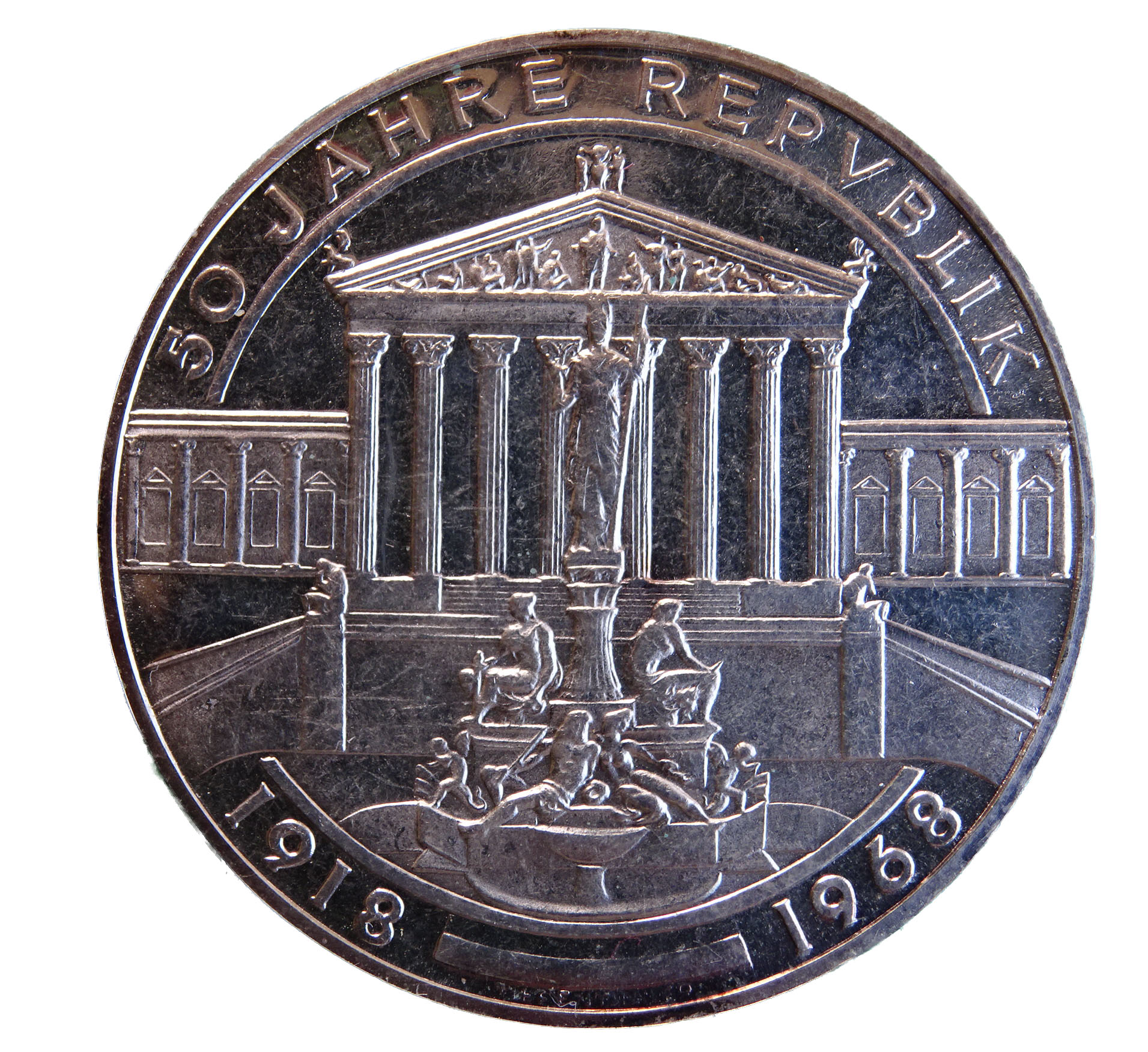 Diese seltene Gedenkmünze wurde 1968 zum 50-jährigen Jubiläum der Republik Österreich geprägt. Sie zeigt das Wiener Parlamentsgebäude – ein Symbol für Demokratie und nationale Identität. Die hier angebotene Variante weist eine Fehlprägung auf, was sie zu einem besonders begehrten Sammlerstück macht.
