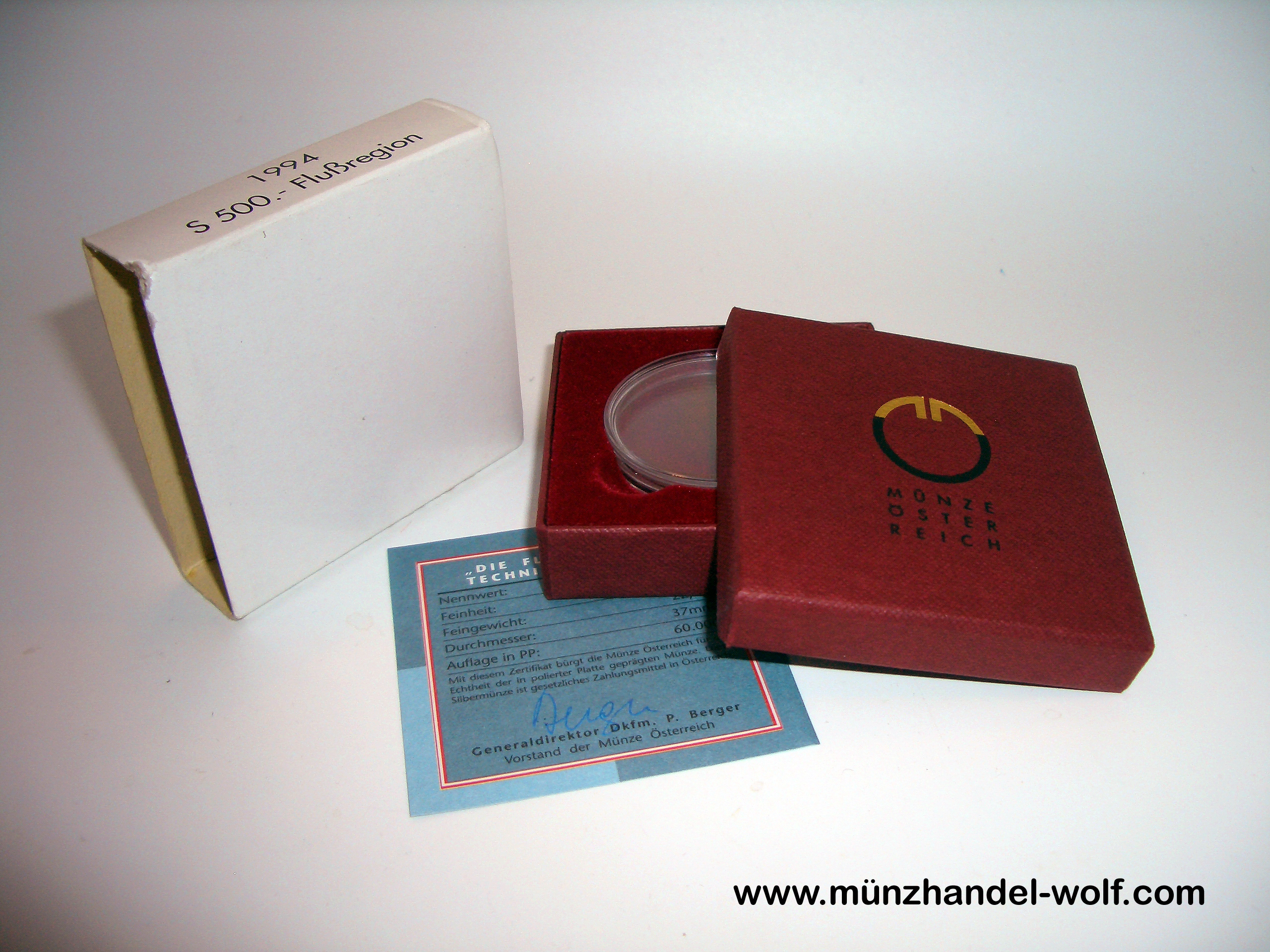 500 Schilling Etui 1994 Flußregion mit Zertifikat