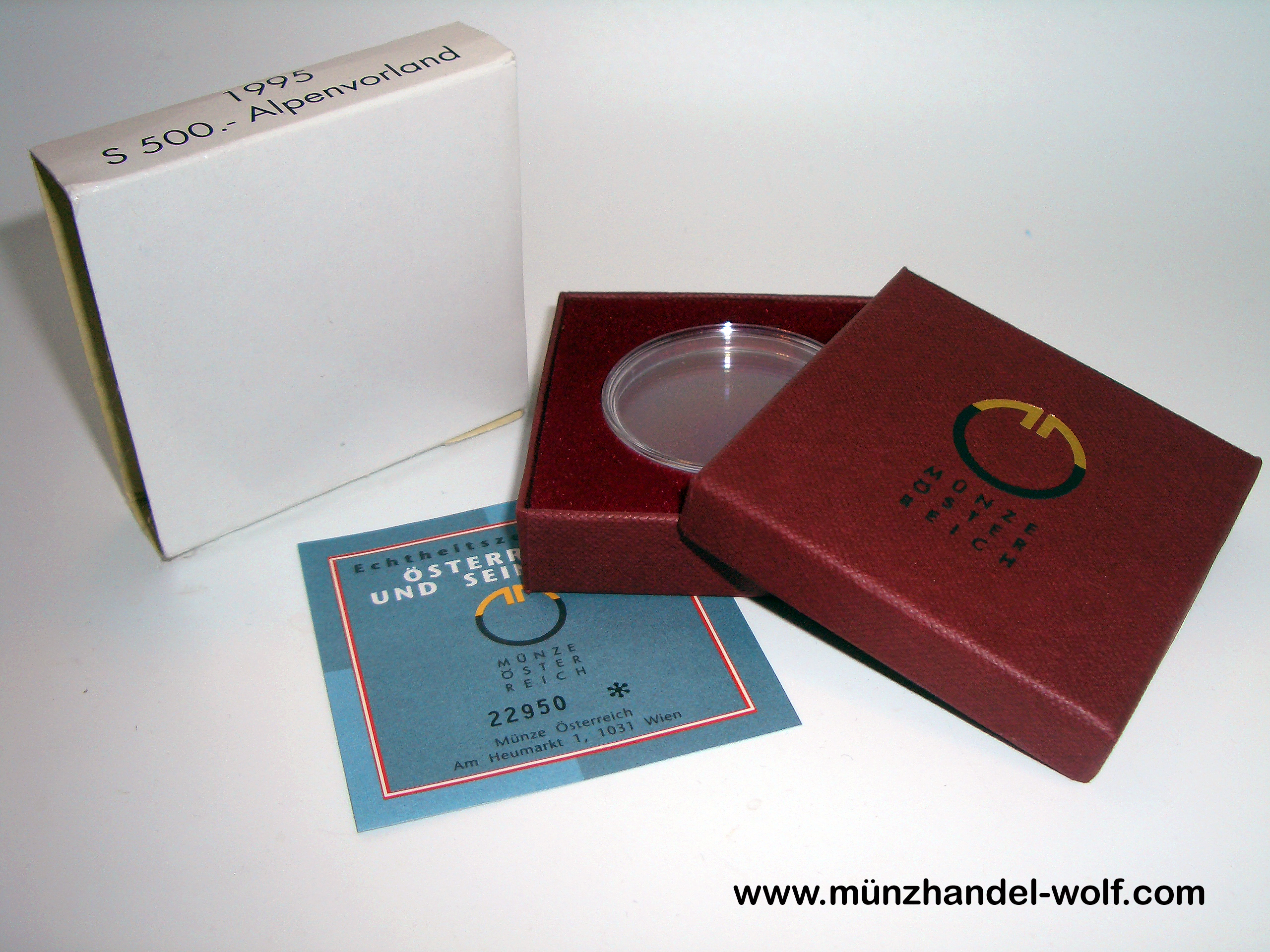 500 Schilling Etui 1995 Alpenvorland mit Zertifikat