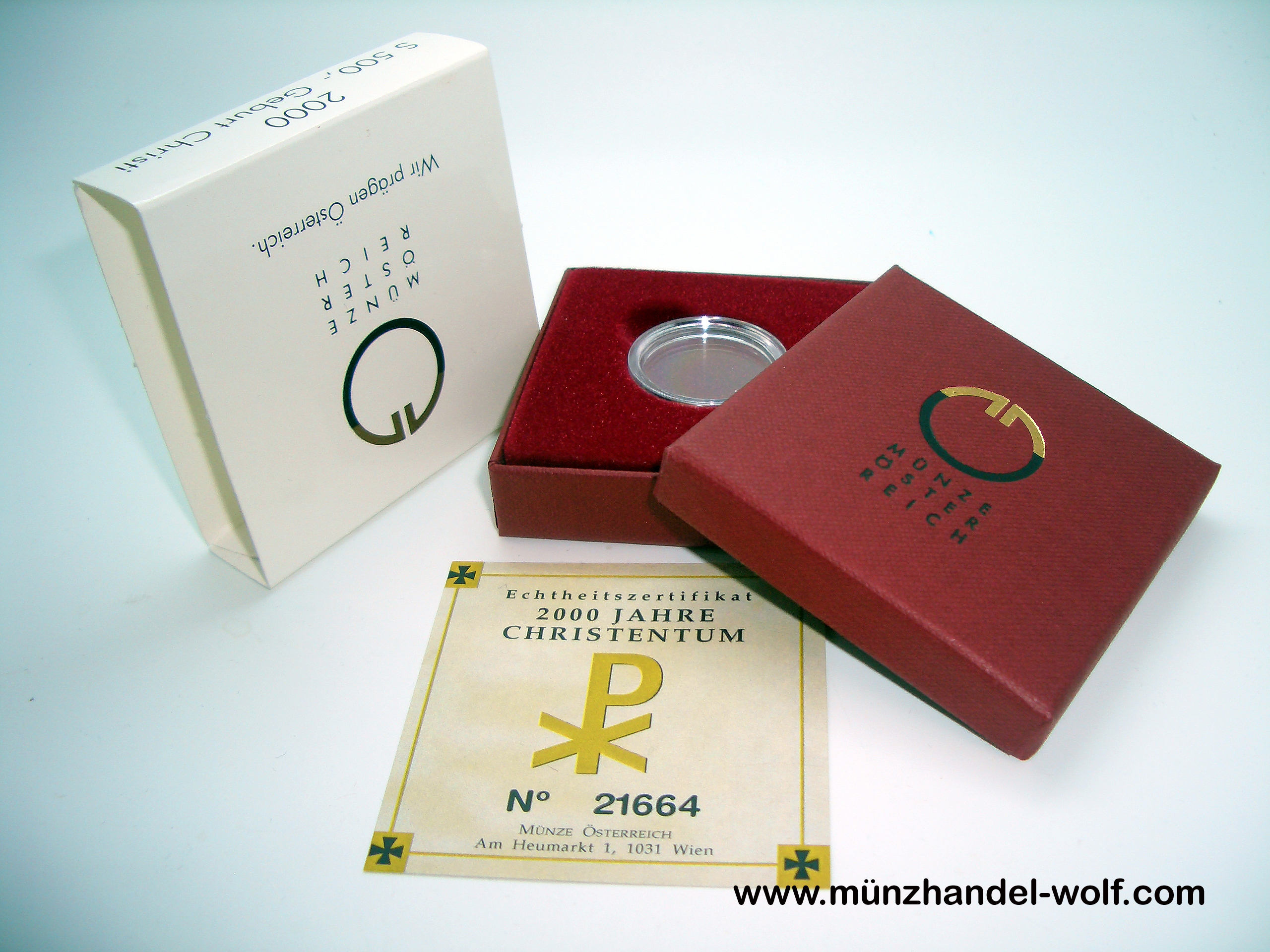 500 Schilling Etui 2000 Geburt Christi mit Zertifikat