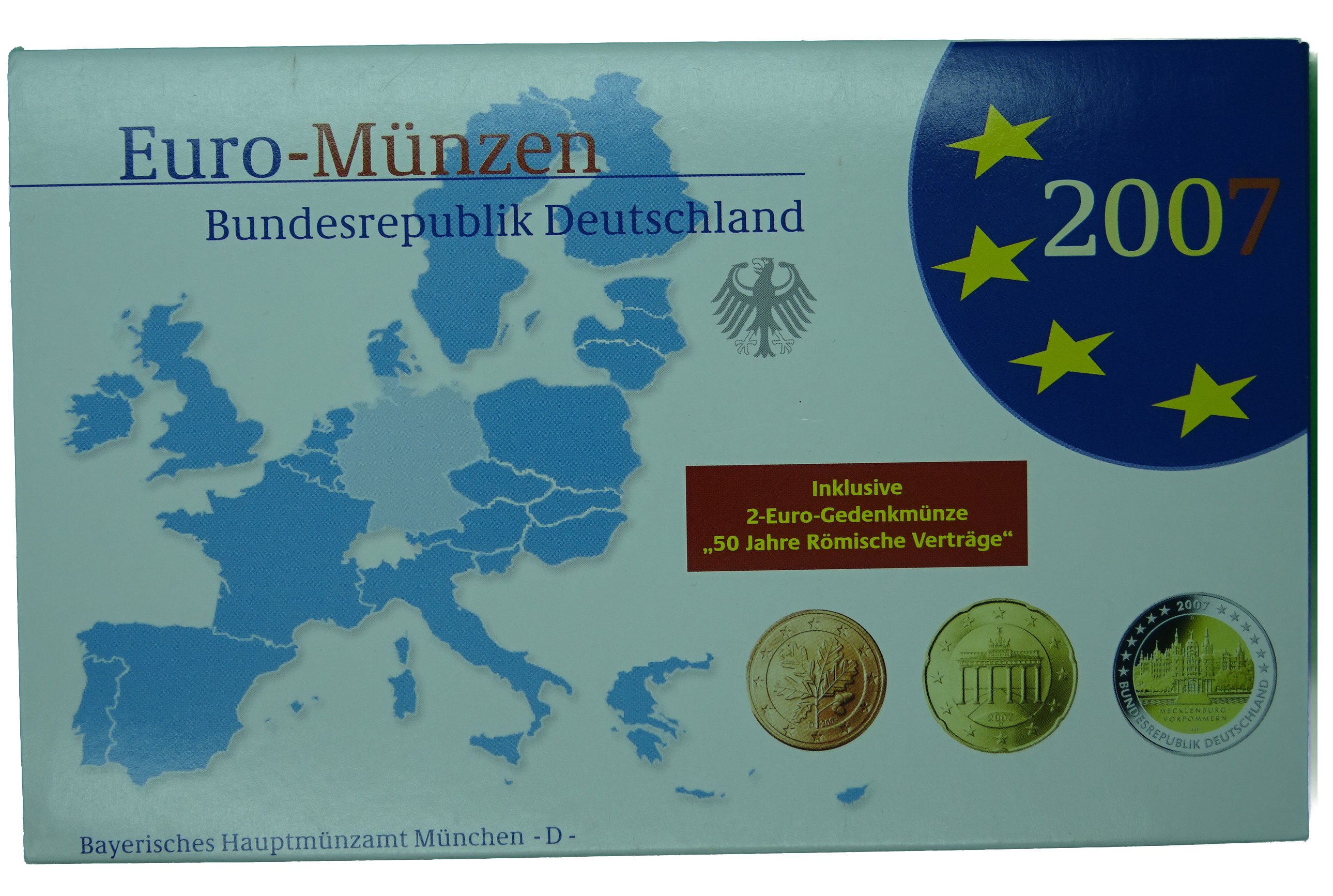 Sie umfasst fünf Kurs- und Umlaufmünzensätze des Jahres 2007 (Römische Verträge), einschließlich der 1-Cent bis 2-Euro-Kursmünzen sowie der 2-Euro-Gedenkmünze Schlosses Schwerin aus der Bundesländer-Serie.