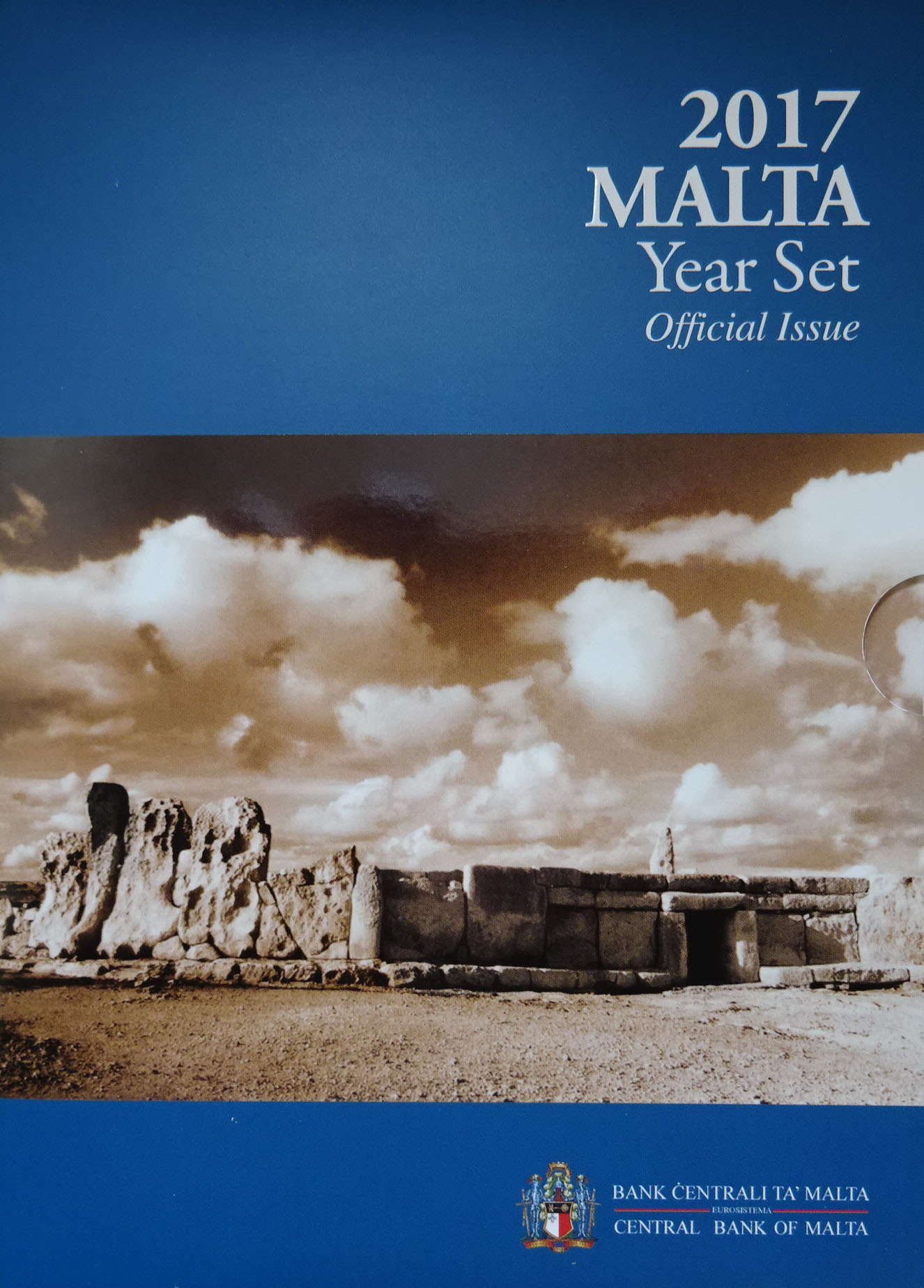 Der offizielle Kursmünzensatz Maltas aus dem Jahr 2017 enthält alle 8 regulären Euro-Münzen sowie die 2-Euro-Gedenkmünze „Tempel von Hagar Qim“, die Teil der Serie Prähistorische Stätten Maltas ist. Die Münzen sind in Stempelglanz geprägt und befinden sich in einem dekorativen Folder.