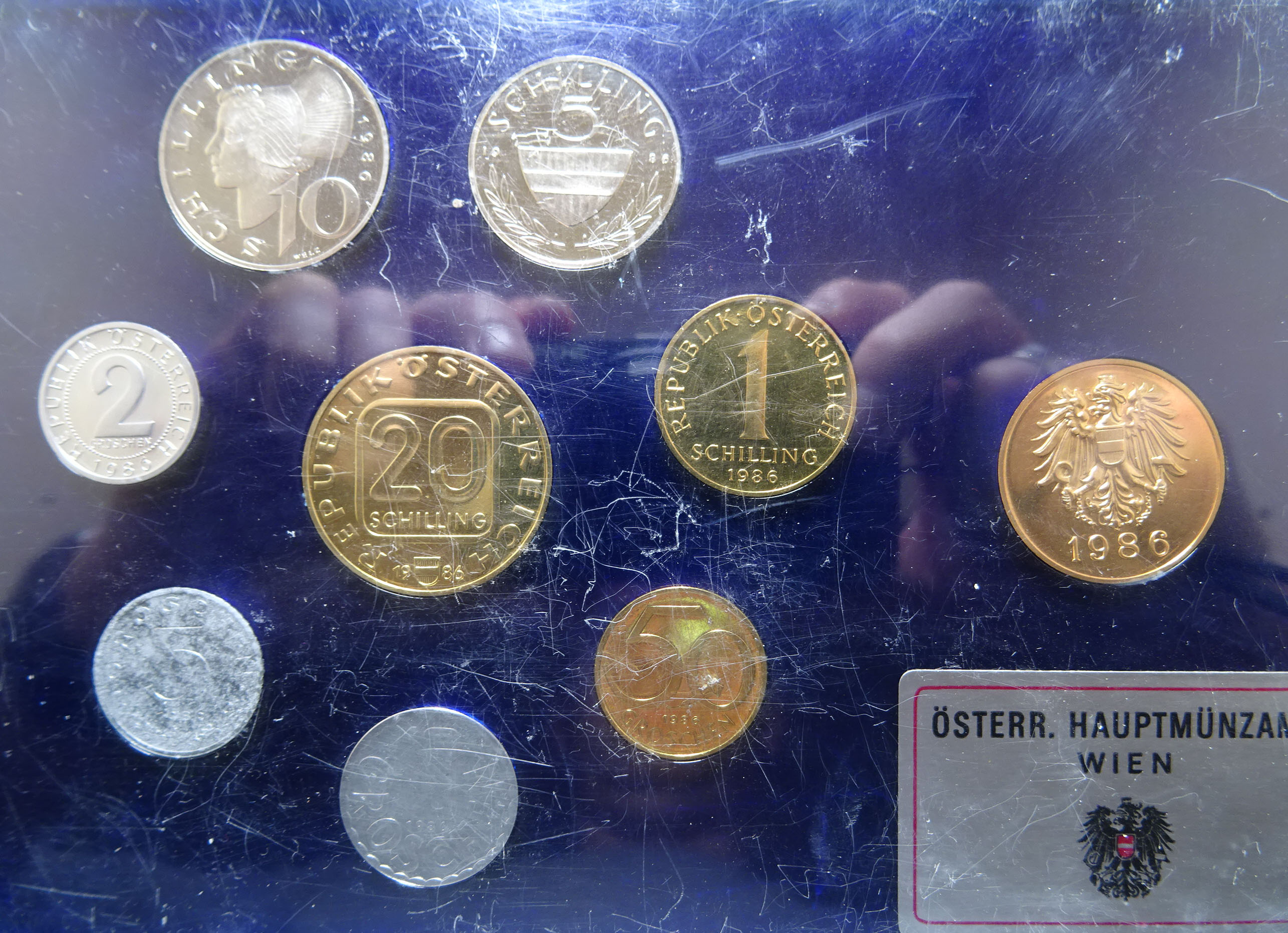 Der Kleinmünzsatz 1986 der Republik Österreich in Polierter Platte (PP) enthält alle Kursmünzen des Jahres in höchster Prägequalität.