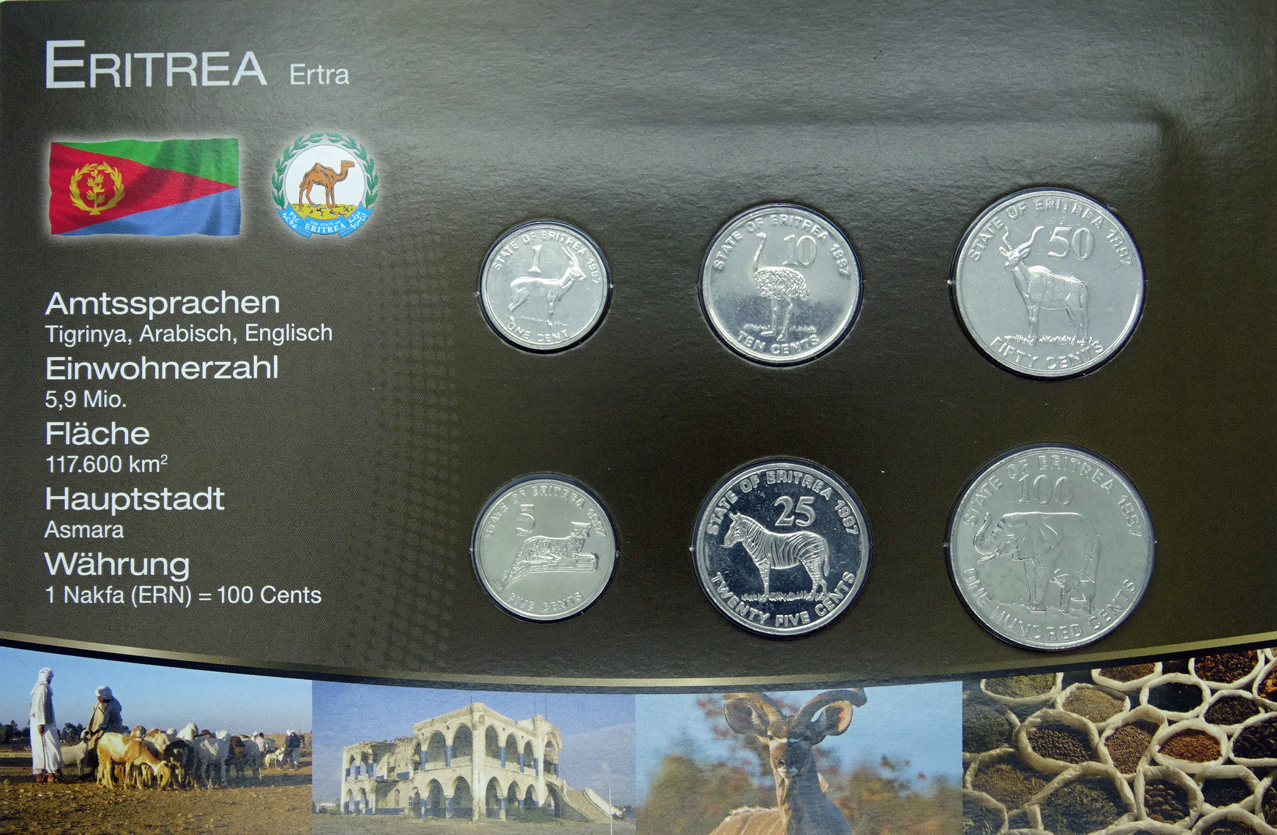Kleinmünzsatz Eritrea 1997 1 Cent bis 100 Cent